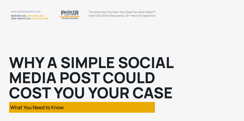 At Parker Law Firm, we’re here to fight for you and guide you every step of the way. From the first time we meet, we’ll help you make a plan to handle your social media and protect your rights. Social media can help or hurt your case, depending on how you use it. If you or someone you love has been hurt, don’t let a simple post ruin your chance at fair compensation. Call us as soon as you can. We’ll listen, help you protect your rights, and fight for the justice you deserve. You don’t pay us unless we win, and we’ll treat you like family the whole way.